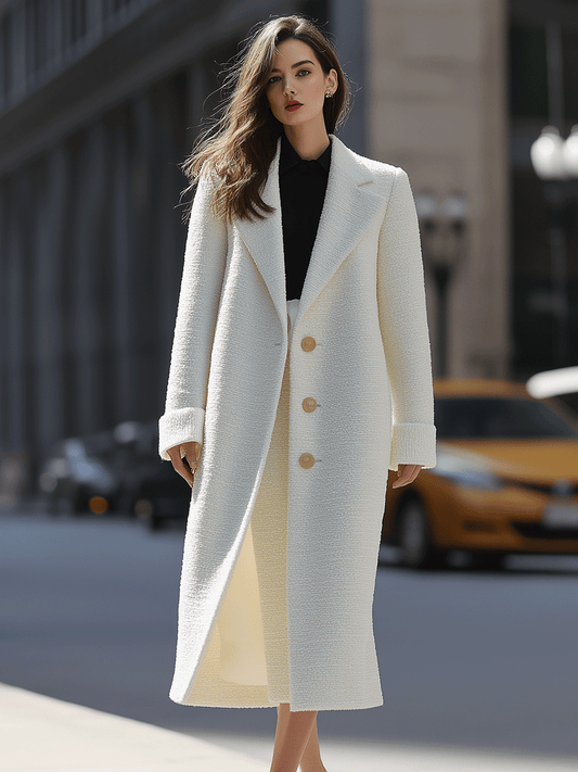 Ivory Textured Long Coat