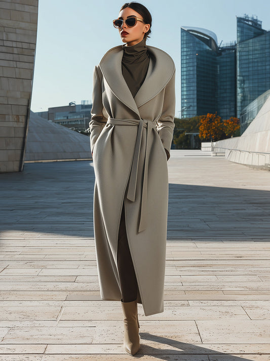 Light Grey Wrap Long Coat With Sculpted Lapels