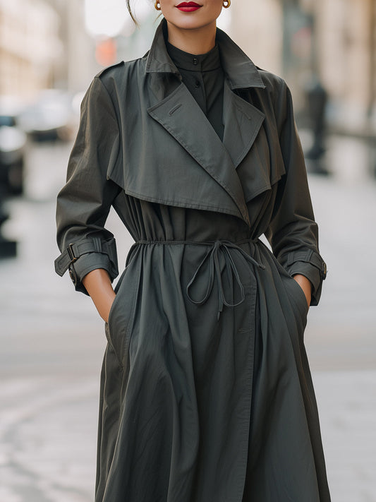 Belted Trench Coat With Gathered Waist