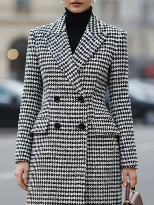Timeless Black - White Houndstooth Double - Breasted Coat