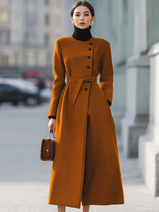 Camel Single-Breasted Long Coat Dress
