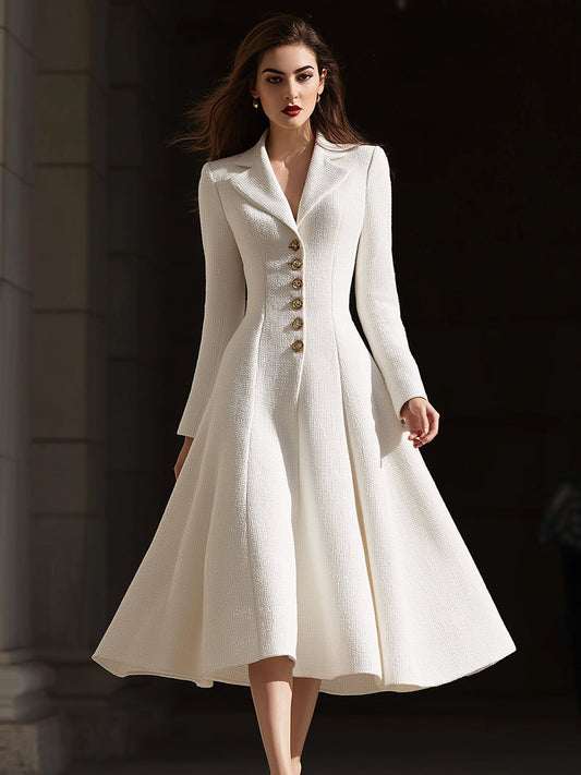 Grey Asymmetric Blazer Dress With Gold Buttons