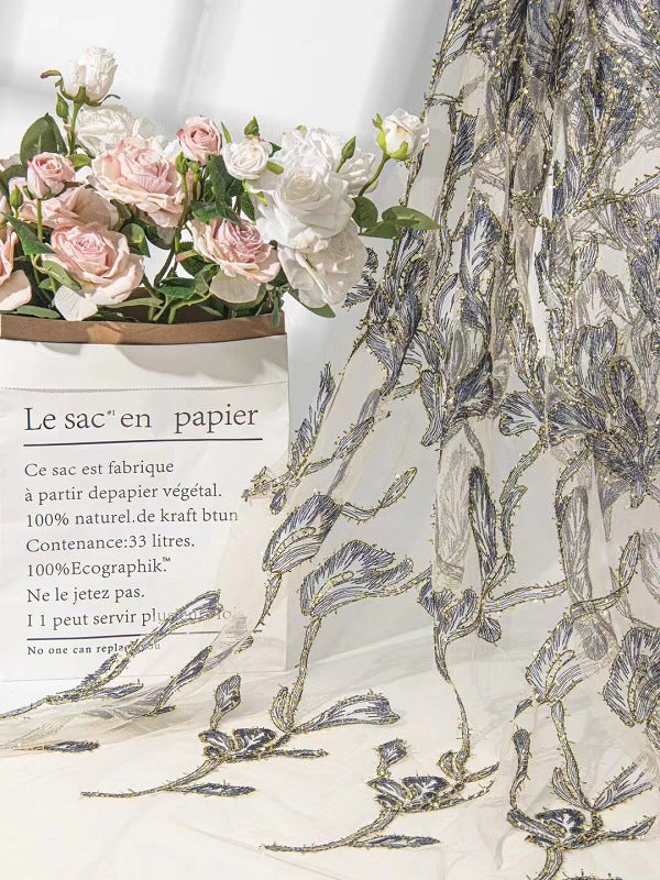 • Material: Lightweight embroidered fabric with delicate metallic threading and soft inner lining